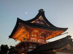 伏見稲荷に着くとまず目に飛び込んできたのは真っ赤な鳥居でした写真や映像でしか見たことがなかったので数と迫力に圧倒されました。京都は観光客が多く、あらためて人気な観光地なんだと実感させられました。班行動の時間は20分ほどでしたが私たちの班は千本鳥居のなかを駆け抜け、頂上一歩手前まで行きましたが惜しくも時間になってしまいいけませんでした。ですが下山してくる時の夕日は修学旅行で見た中で一番きれいな景色でした。階段を上がるのは少し大変だったけど全部この景色のためだったのかと思いました。帰り道は景気が綺麗だったので足が軽かったです。下に戻るとお土産を買うところがあったのでおみくじを買いました。結果は大吉でした。多分あそこは全部大吉出るんだろうけど......まあさておき見学の後は旅館に向かいました。