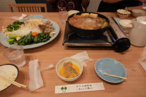 京都駅の目の前というとてもよい立地でした。初日の夜のメニューはすき焼きでした。何で京都ですき焼きなのかはよくわからないですが、美味しかったと思います。お腹空いてたのでいっぱい食べられました。部屋は13人部屋で良い木の香りと畳の香りがした古い感じの旅館でした。夜の入浴を済ませた後、部屋でお菓子を食べながら友達と楽しく過ごしました。1日目でクラスの絆がとても深まったと思いました。1日目は本当に盛りだくさんで笑顔が絶えない1日でした。明日からの日程も楽しみで、夜もなかなか眠れませんでした。